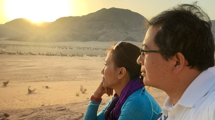 Now back at home, I lovingly held my mug and gulped down cool refreshing tap water from the kitchen. A quick peek through the blinds and I realize the garden outside is wet due to precipitation. Jordan seems worlds away, but I can now hold dear the memory of observing the sun rise over the desolate horizon… perched above a boulder with my significant other while a caravan of dromedaries etch lines in the sand… sensing life come in to being on a desert valley in Jordan.