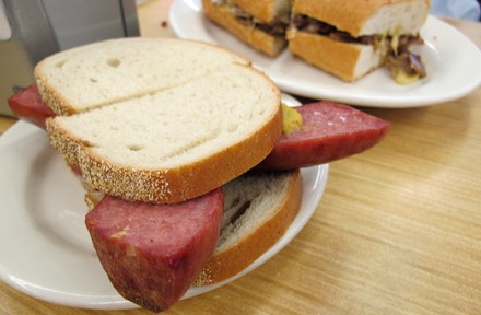 The following day, on what was another stinking hot afternoon, Dee and I relieved ourselves from the heat at Katz's Delicatessen. "Yess.. Yeeesss… Yeeeessss..!" If you recall Meg Ryan's character in "When Harry Met Sally", screaming fake orgasms in this diner that was made even more popular because of the movie scene. I don't know what nosh Sally was having, but I chose to order Katz's Knoblewurst, their signature garlic beef sausage between two slices of bread with mustard. Sauerkraut optional.