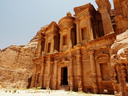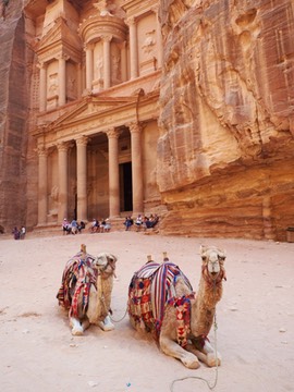 A further 20+ kilometer hike from The Treasury, up 800 winding steps, under searing desert sun, took us past the monastery and adjoining structures. Made of sandstone. Constructed by Nabateans. Built in the first century. The thrill of the trek was not the destination, but the challenging terrain. Donkeys carried water and logistics up the dusty trails and galloped back down again at break-neck speeds with empty vessels. The dangling carrot that encouraged us to keep walking was the view at the cliff edge...